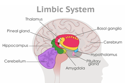 A lot of brain activity goes on in emotion perception, involving the thalamus (an egg-shaped, mid-brain gray matter that relays sensory and motor information), the amygdala (an almond-shaped organ deep in the limbic system that safeguards basic survival/sex and basic emotional reactions, like anger, fear, and pleasure), and cerebral cortex (gray matter mostly made up of neurons sending new information via electrical signals throughout the brain).